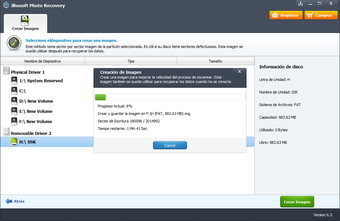 Opción de "Crear imagen" para realizar copias de seguridad de la memoria de almacenamiento. El programa creará un archivo de imagen de los medios de almacenamiento destinado, por lo que una vez que los datos son perdidos, puede restaurar los datos desde el archivo de imagen.